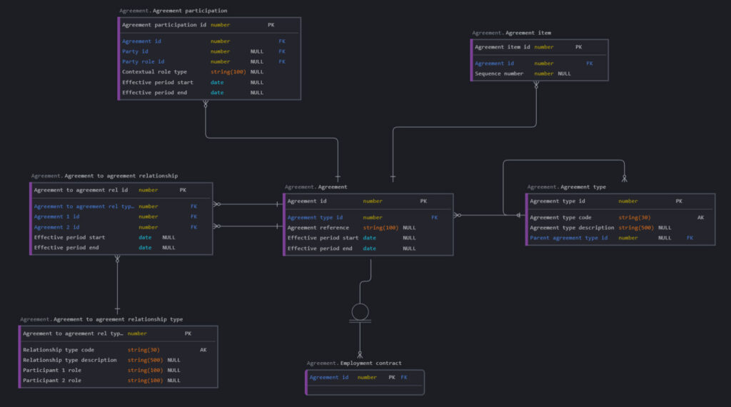 The Agreement pattern captures the formal and informal contracts that govern business relationships. Every organization operates through agreements—employment contracts, service-level agreements, purchase orders, leases, and partnerships —and the challenge is modeling them in a way that’s both flexible and consistent.